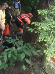On Sunday June 3rd., 2018 the West Ridge Fire Department was dispatched to a remote location on Walnut Creek for a report of several hikers that had become stranded in rapidly rising waters. Members of West Ridge arrived first and discovered that all but one hiker had made it safely to shore. There was one hiker who remained trapped on a small ledge and could not make it to land without falling into the rapidly moving water. Members of West Ridge were able to drop a PFD (personal flotation device, or life vest) to this individual so that he would have a measure of safety if he were to fall into these waters.